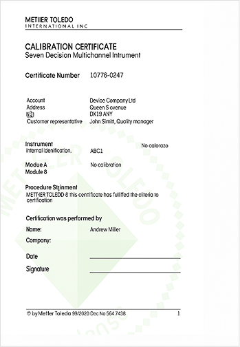 결과에 대한 교정 인증서를 발급합니다. 인증서는 합격/불합격 판정과 장비 성능을 입증하며,
